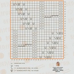 На схеме лицевые и изнаночные ряды при вязании по кругу. Можно не обращать внимание на четные ряды — они все вяжутся по рисунку, за исключением 6 и 18 рядов, в которых делается перекрещивание петель 3х3. Если не хотите заморачиваться с вязанием на изнанке, вяжите перекрещивание на ряд ниже или выше.