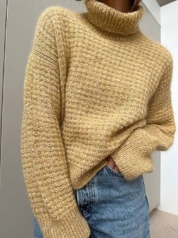 Этот уютный свитер ручной работы станет прекрасным дополнением вашего гардероба. Выполненный в теплых золотисто-желтых тонах, он обладает фактурной вязкой и свободным кроем, что придаёт образу стиль и комфорт. Высокий воротник и длинные рукава обеспечивают дополнительное тепло, а мягкая текстура добавляет ощущение уюта. Идеальный выбор для прохладных дней!