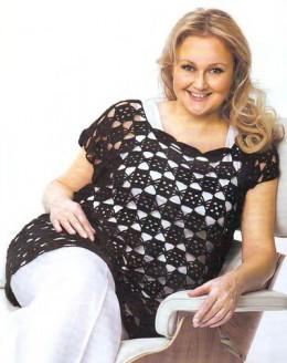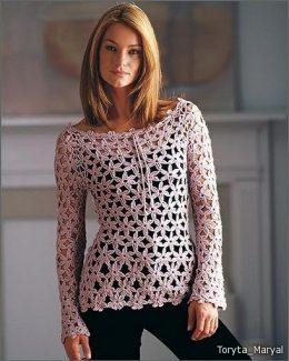 Кофта крючком, с интересным узором. Кто воплотит в жизнь эту модель присылайте нам! взято тут