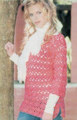 Розовая кофта вязаная крючком.