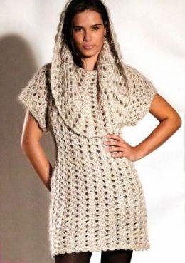 Белое зимнее платье вязаное крючком Размер 40-42, 800 г Majestad de Cisne, цвет nlOOl, крючок n 6. Кокетка. Перед: связать цепочку из 66 петель, Вязать с обеих...