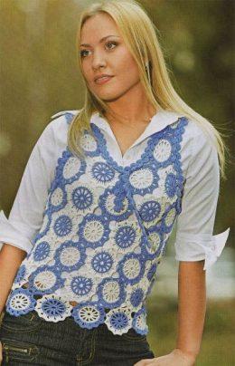 Вязаная майка из мотивов Размер: 36/38 Вам потребуется: пряжа ATELIER Z1TR0N: 200 г синей (цвет №14) и 150 г белой (цвет №01) LIFE STYLE (100% мериносово...