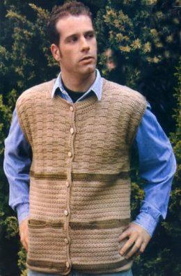 Жилет с карманами вязание для мужчин Размер: 54 Вам понадобиться: 600 г акриловой пряжи светло-коричневого цвета, 120 г пряжи табачного цвета и 7 пуговиц...