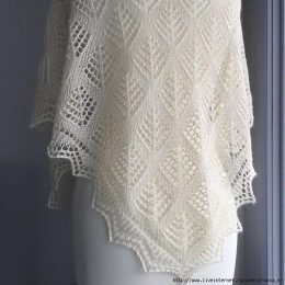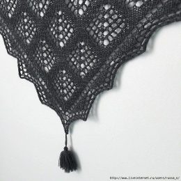 Этот изысканный ажурный палантин, выполненный спицами, сочетает в себе утонченность и тепло. Уникальный листовой узор создает впечатление легкости, а края оформ...