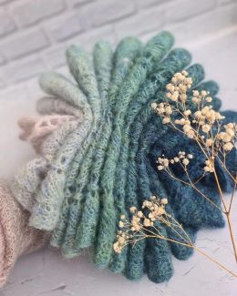 Этот шарф, связанный спицами, отличается нежной текстурой и изысканным ажурным узором, придающим изделию воздушность и легкость. Использование тонкой мохеровой...