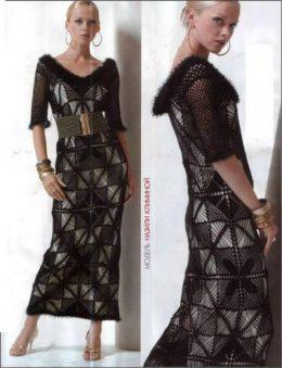 Еще одно платье вязаное крючком из мотивов, описание не русское . есть схемы вязания платья.