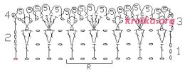 платье сетка из соломоновых петель вокруг цветка 1-й ряд - столбики с накидом. 2-й ряд - 5 столбиков с накидом на 5 столбиках основания, 3 столбика пропускают,...
