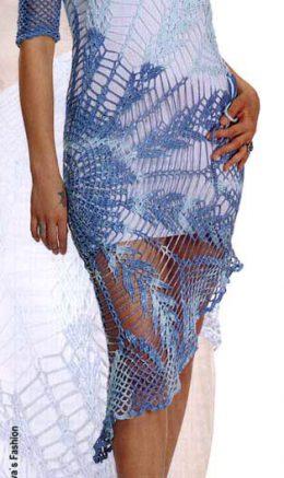 Голубое платье вязаное крючком Размер 44 Вам нужно : 600г х/б пряжи секционного крашения, несколько десятков жемчужных бусин. крючок № 1.5. игла. изделие выполн...