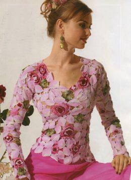 Топ кружевной РАЗМЕР 42 Модель выполнена крючком. Вам потребуется: около 500 гх/б пряжи «Макси» и «Виолетт» подобранных вами цветов; немного вискозы с люрексом...