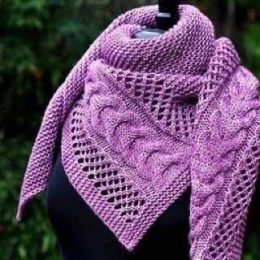 Этот вязаный шарф выполнен из мягкой пряжи нежного лилового оттенка, украшен выразительными объемными косами и воздушными ажурными узорами, создающими легкость...