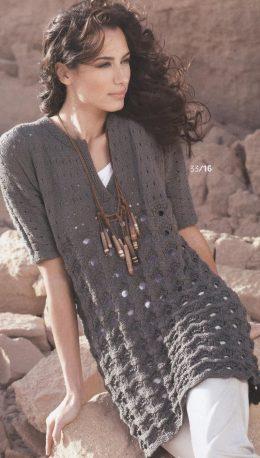 Узорчатое мини платье Размеры: 36/38 (40/42) 46/48. Вам потребуется материалы: 500 (550) 600 г светло-серой пряжи Zoom (60% мериносовой шерсти, 30% хлопка, 10%...