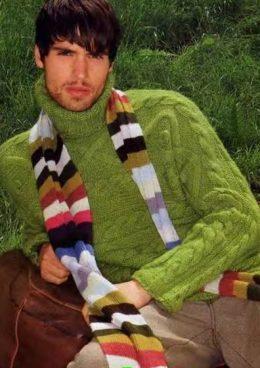 Зеленый пуловер гольф с «косами» и ромбами Размер: 46-50 Вам потребуется: фитильная пряжа Gedifra “Fashion Trend”: (51% шерсти, 49% полиакрила, 90 м/50 г) - 700...