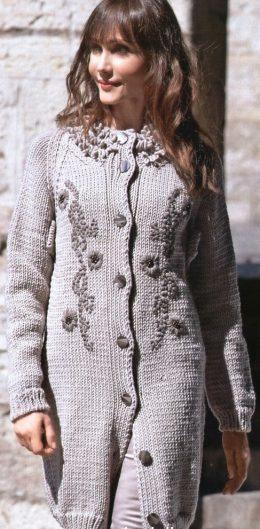 Пальто с вышивкой РАЗМЕР ПАЛЬТО: 38 ВАМ ПОТРЕБУЕТСЯ: 1400 г светло-серой и немного (для вышивки) более тёмной серой пряжи Mondial Kross (100% мериносовой шерсти...