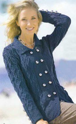Красивый жакет в новом стиле, который получил название «униформа». Планки с пуговицами на рукавах просто пришиты. Размеры: 38-42 Вам потребуется: 800 г синей пр...