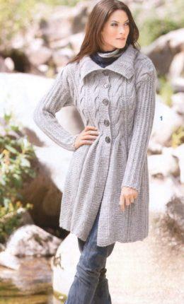 Пальто с эффектным узором из кос и трапециевидного силуэта отлично смотрится с плотными колготками, с легинсами или - как здесь - с джинсами. Благодаря качестве...
