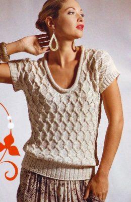 Топ песочного цвета Размер: 36-38 Вам потребуется: пряжа «Канди» (100% шерсть, 178 м/100 г) - 200 г песочного цвета, спицы № 4, крючок № 3,5.
