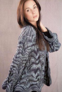 жакет с волнистым узором вязание спицами размеры: 38-40 Вам потребуется: пряжа ANDES (100% шерсть, 200 м/100 г) - 500 г секционно-окрашенной в син...