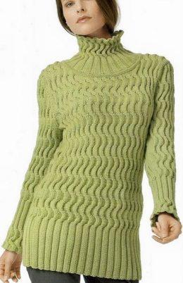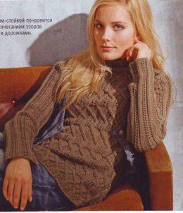 Свитер с полупатентым узором Размер свитера: 36/38 Вам потребуется: 550 г бежевой пряжи Country; прямые и круговые спицы № 6. Основной узор: вязоть по сх...
