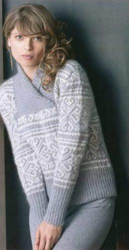Несмотря на тенденции моды, норвежские узоры делают любую вещь классикой. Мягкий свитер из светло-серой пряжи с белым орнаментом, тёплый и уютный. Он подходит д...