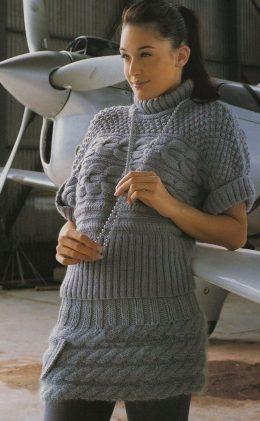 Длинный свитер с косами. Размер: 36/38, 40/42, 44/46, Материалы; 850 (900/ 1000) г пряжи Gedifra Extra Soft Merino (100% шерсть мериноса, 50г/ 105м) спицы и кру...