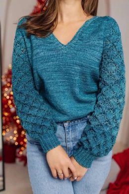 Кофты и пуловеры Объемный вязаный свитер с классическими косами и оригинальными ажурными вставками на рукавах, создающими эффект легкой прозрачности. 14.07.2025 0