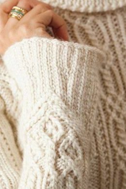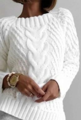 Перед вами замечательный белый свитер с шикарным косым узором. Искусно проработанные детали делают его уникальным: объемные косы в центре и аккуратная вязка по...