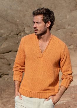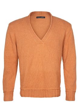 Этот вязаный свитер удивляет теплым оттенком и глубоким V-образным вырезом. Изготовлен вручную из мягкой шерсти, он сочетает в себе стиль и комфорт, идеально по...