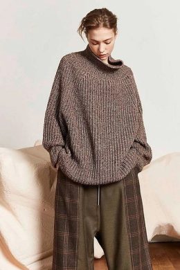 Этот уютный и стильный свитер с крупной вязкой идеально подходит для прохладных дней. Его уникальная свободная форма и высокий воротник делают его настоящей нах...