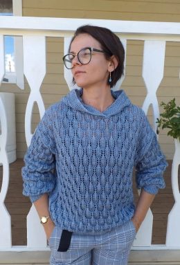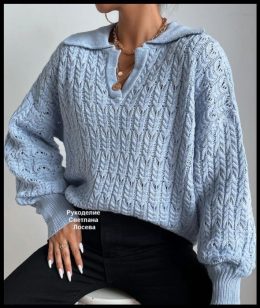 Это вязаный свитер спицами, который выглядит невероятно изящно. Узор "веточки" придаёт изделию особое очарование и воздушность. Мягкая пряжа создаёт комфорт и у...
