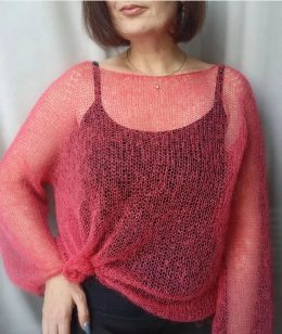 Этот рукодельный прозрачный свитер пленяет своей воздушностью и легкостью. Выполненный в нежном розовом цвете, он искусно вяжется из тончайшей пряжи. Уникальная...