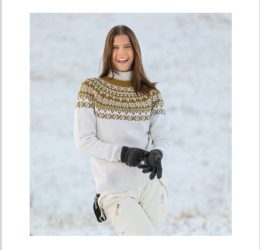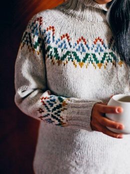 Теплый свитер с уникальным жаккардовым орнаментом на груди и манжетах, выполненный из мягкой пряжи. Свитер с жаккардовой кокеткой