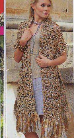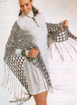 Шаль-пелерина вяазная крючком Вам потребуется: 350 г шерстяной пряжи средней толщины; крючок №3,5. Описание работы: вязание крючком наберите 108 в.п. и вяжите п...