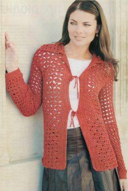 Красный жакет вязаный крючком Вам нужно 500 г искусственного мохера с добавлением полиэстра оранжевого цвета и 16 бусинок. КРЮЧОК №3,5 и 4. ВИДЫ ПЕТЕЛЬ Воздушна...