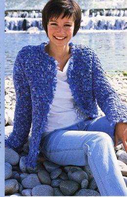 Жакет с карманами Размеры: 36/38 (40/42) Вам потребуется: 850 (900) г голубой пряжи Rotonda (100% микроволокна. 130 м/50 г), 500 (550) г белой Toccata Fi...