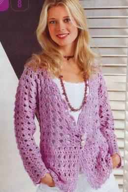 Светло-сереневый жакет Размеры: 34/36 (38/40) 42/44 Вам потребуется: 250 (300) 300 г светло-сиреневой пряжи Move (45% мериносовой шерсти, 45% полиэстера,...