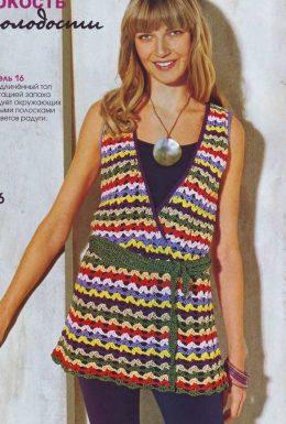Радужный топ вязание крючком Размеры: 34/36 (38) Вам потребуется: 200 г меланжевой пряжи Freizeit-Bambus (45% вискозы, 40% овечьей шерсти, 15% полиамида, 400 м/...