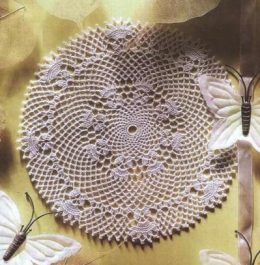 Коллаж узоров вязаная салфетка Вам потребуется: 30 г белой хлопчатобумажной пряжи (265 м/50 г), крючок № 1,25-1,5. Описание работы: для центральной части...
