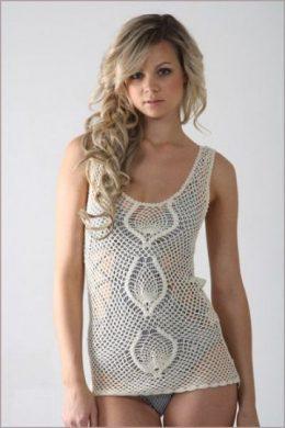 Белая длинная маечка вязаная крючком. Красивый топик из хлопка смотрится довольно просто, но 3 узоа "ананаса" органично вписывается в дизайн майки. вязание крюч...