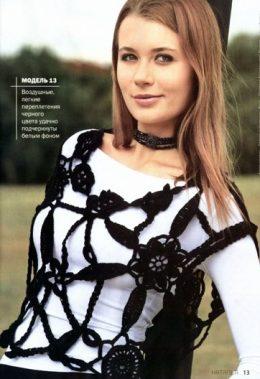 Красивые белые цветы расположенные на черном полотне этого топа, красиво выделяет Вас из толпы. Топ вяжется в технике наборных кружев. Для любителей этой техник...