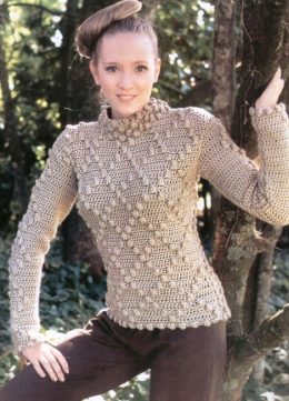 Шикарный пуловер вязаный крючком. Плотная вязка этого пловера согревает. А ромбы из "шишечек" краиво легли на эту кофточку. МАТЕРИАЛЫ 850 г пряжи средней...