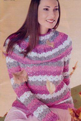 Разноцветный пуловер крючком МАТЕРИАЛЫ По 200 г акриловой пряжи след. цветов: серого, белого, розового и сиреневого. КРЮЧОК №2,5. ВИДЫ ПЕТЕЛЬ Воздушная петля (в...