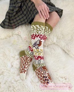 Эти уютные вязаные носки – настоящее произведение искусства, воплощающее в себе природу и тепло. Фасон достигает колена, обнимая ноги мягкостью и комфортом. Гла...