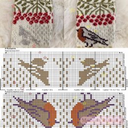Вязаные тапочки на спицах Набрать на спицы 20 петель темными нитками и вязать следующим образом: 1 ряд нитью светлого цвета: кромочную провязать лиц, *1...