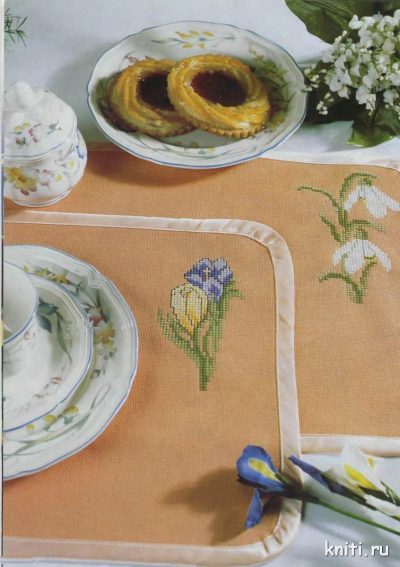 Схема вышивки цветочков. Размер 31 х 46 см Вам потребуется: два отрезка по 31 х 46 см ткани для счетной вышивки абрикосового цвета (80 нитей/ 10 см); мулине, на...
