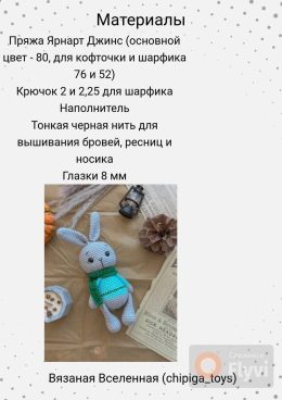 Этот милый зайчик связан крючком и украшен уютным шарфом, придающим ему особый шарм. ✅ Зайчик Клад Амигуруми