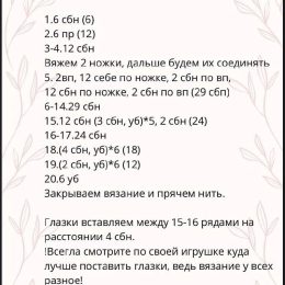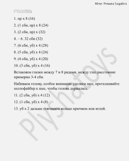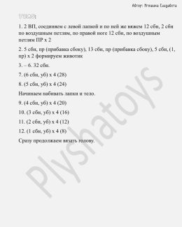 Каждая петля этого амигуруми выполнена с аккуратностью, создавая мягкую и приятную на ощупь текстуру, а уникальные ушки придают игрушке особый шарм и индивидуал...