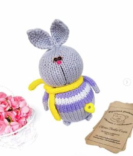 Этот милый зайчик в сиреневых штанишках с белым сердечком на груди просто завораживает! Его полосатый свитер и розовые бантики на ушах добавляют уникальности и...