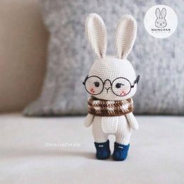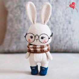 Этот вязаный кролик с большими стеклами и стильным коричнево-белым шарфом точно покорит ваше сердце. Его милые румяные щёчки и синие ботиночки делают его по-нас...