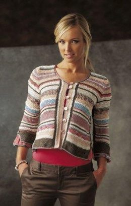 Жакет в разноцветную полоску Размеры: 38/40 (Р1), 42/44 (Р2), 46/48 (Р3), 50/52 (Р4) Вам потребуется: пряжа Anny Blatt: по 3/3/4/ 4 мотка Victoria (100%...