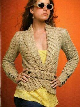 Жакет с воротником-стойкой Размеры: 34/36, 38/40 и 42/44 Вам потребуется: 650 (700/750) г пряжи (75 % шерсть, 25 % полиамид, 150 м/50 г); спицы No 4,5-5; 7 фигу...